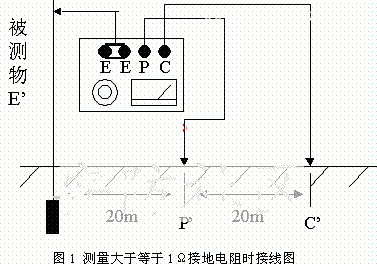 1.1测量大于等于1Ω接地电阻时接线图见图1