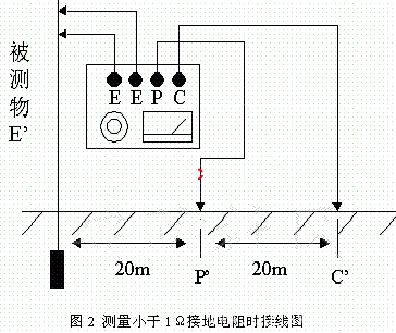 1.2丈量小于1Ω接地电阻时接线图见图2